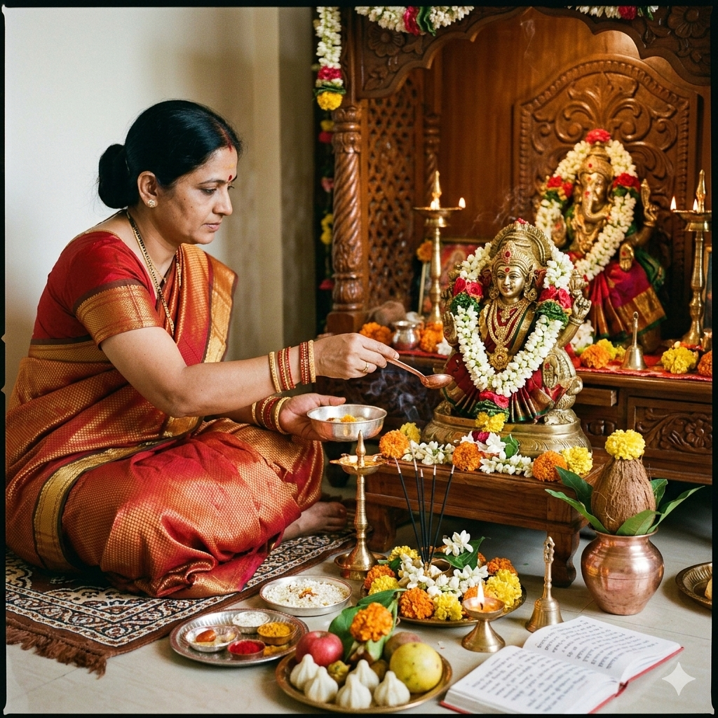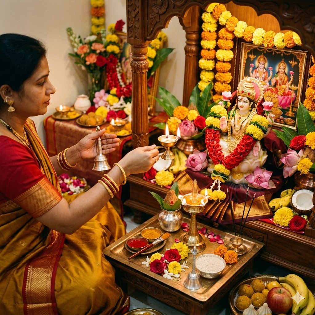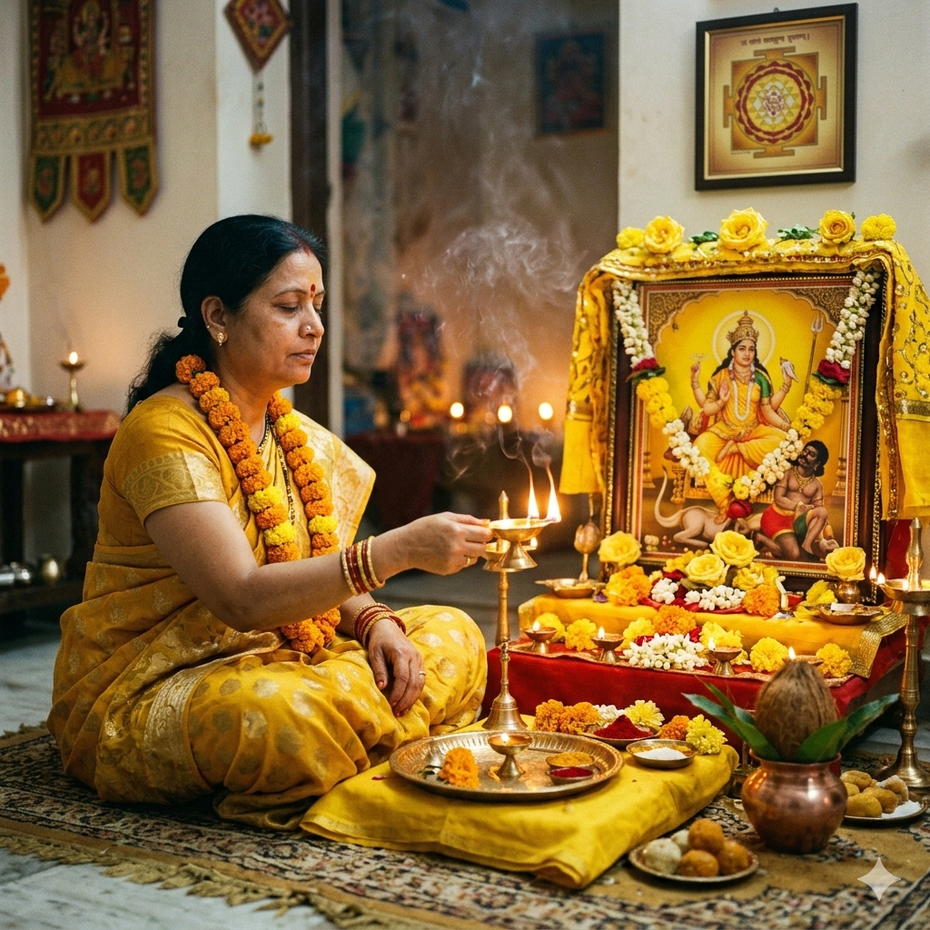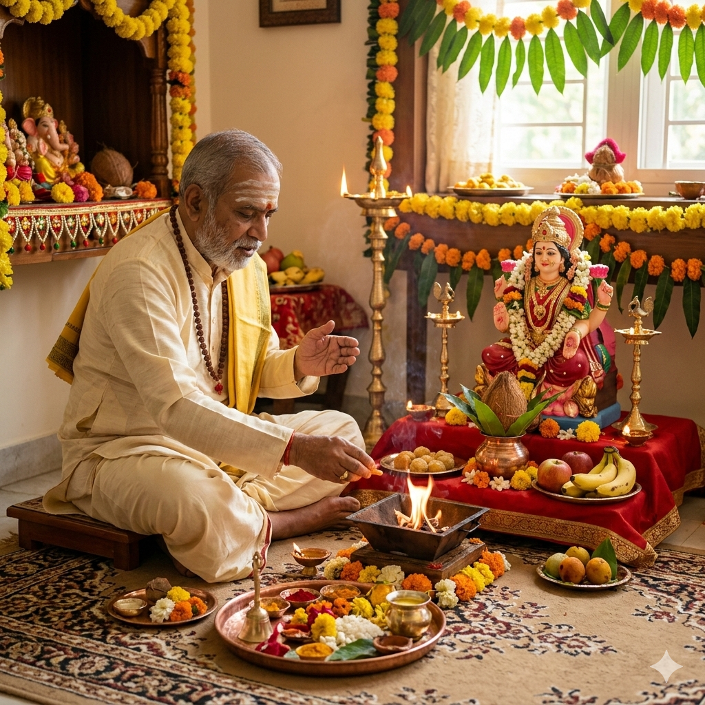 The puja is performed with proper mantras, discipline, and devotion to bring divine blessings and prosperity.