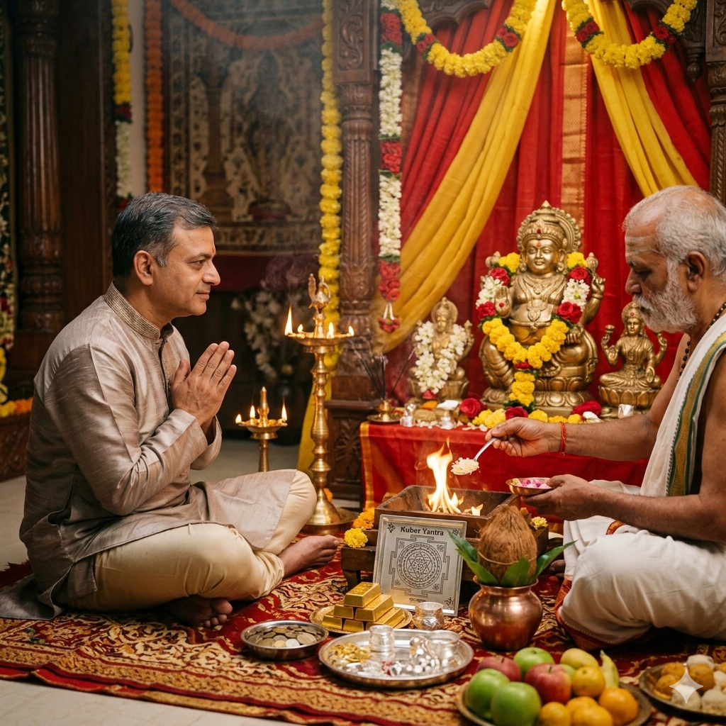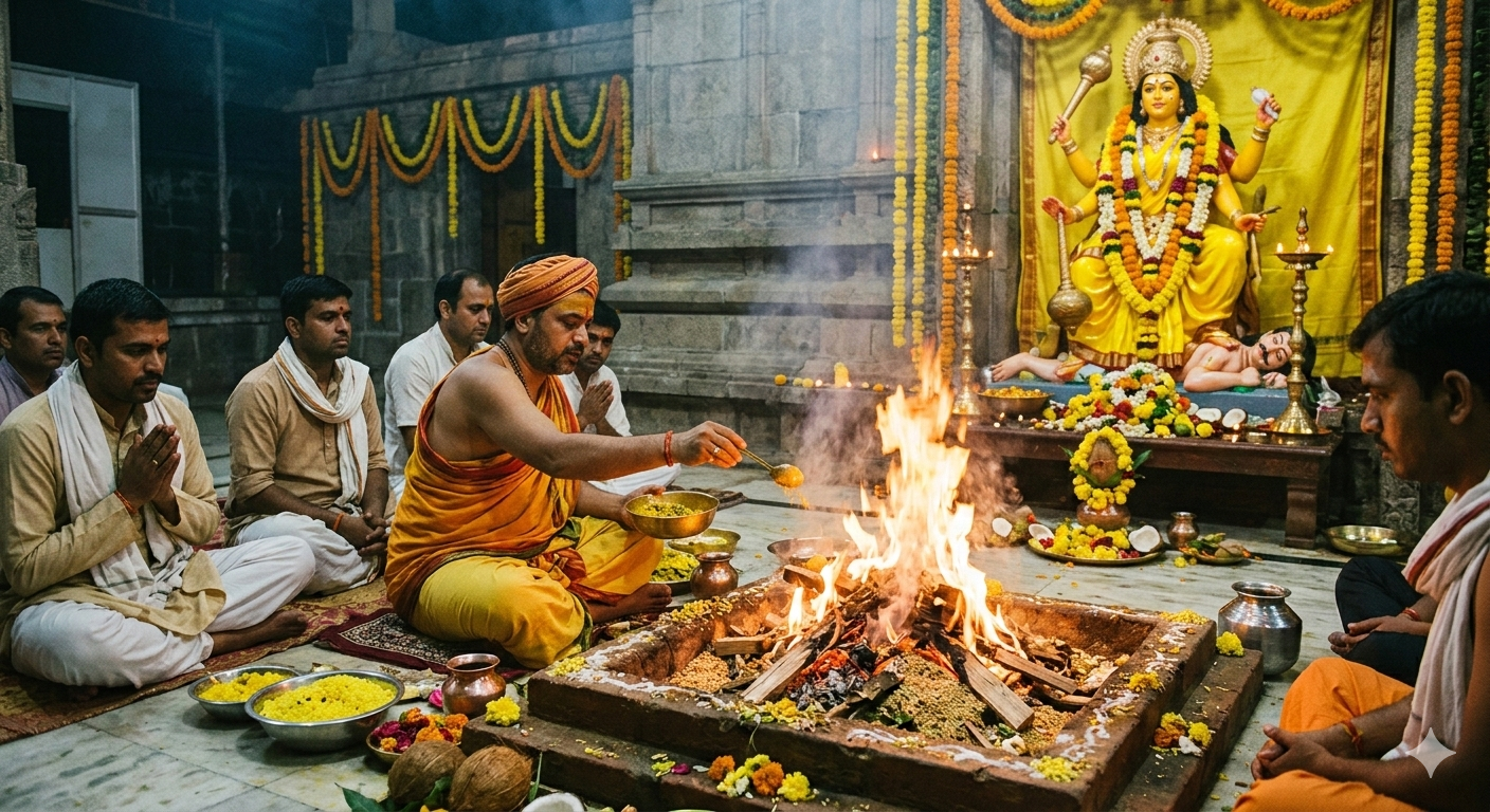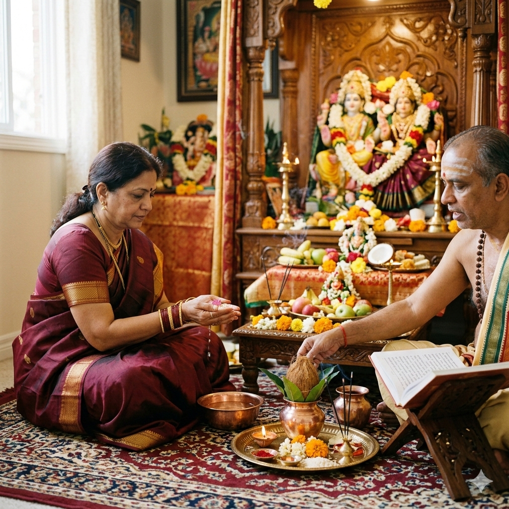The puja is performed with proper mantras, discipline, and devotion to bring divine blessings and prosperity.