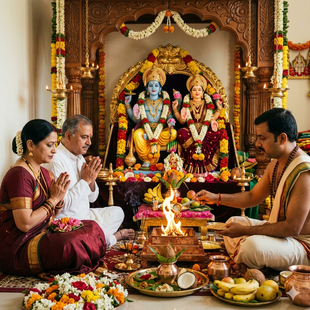 An ideal date and muhurat is finalized to ensure maximum spiritual and positive benefits.